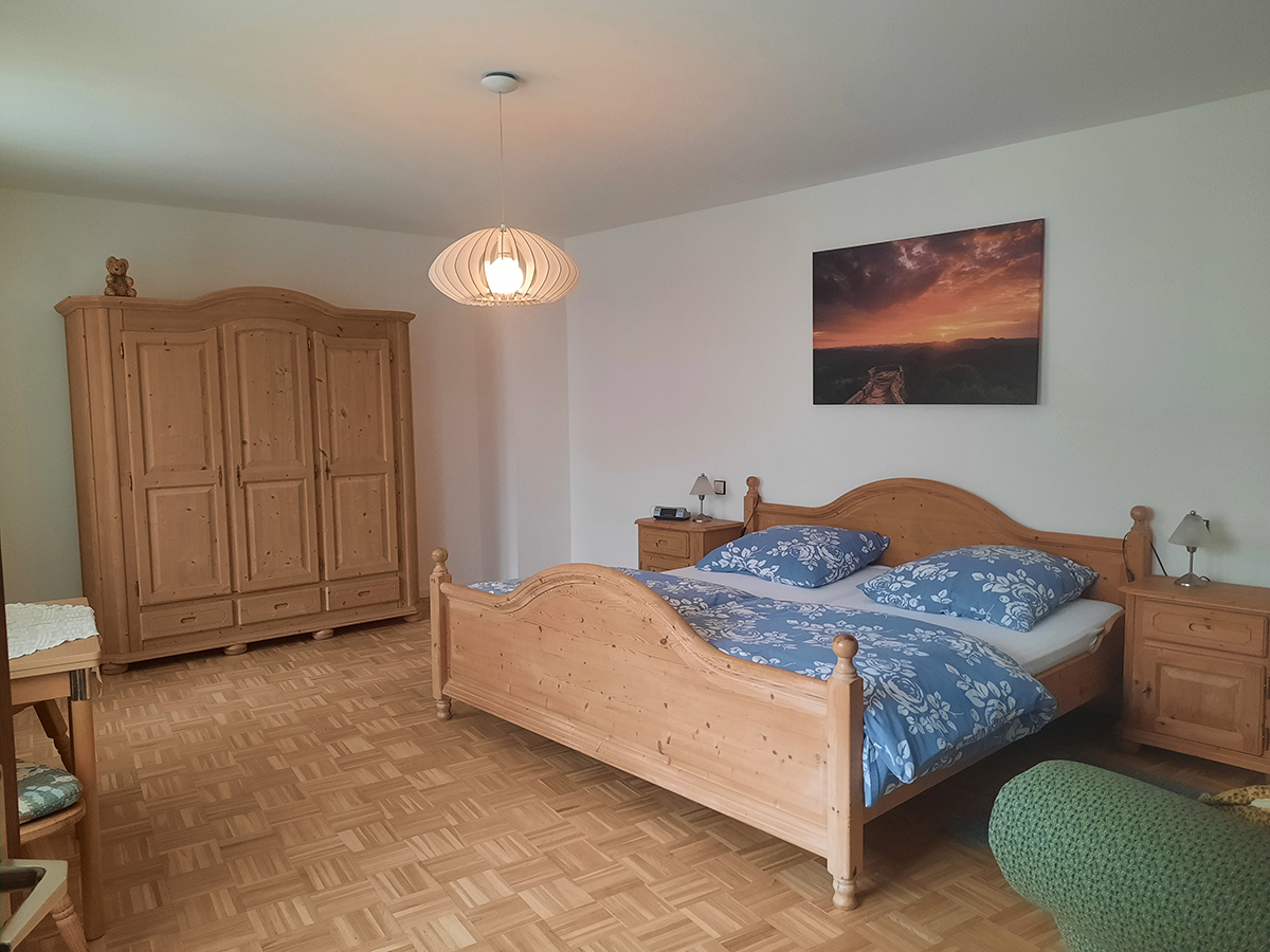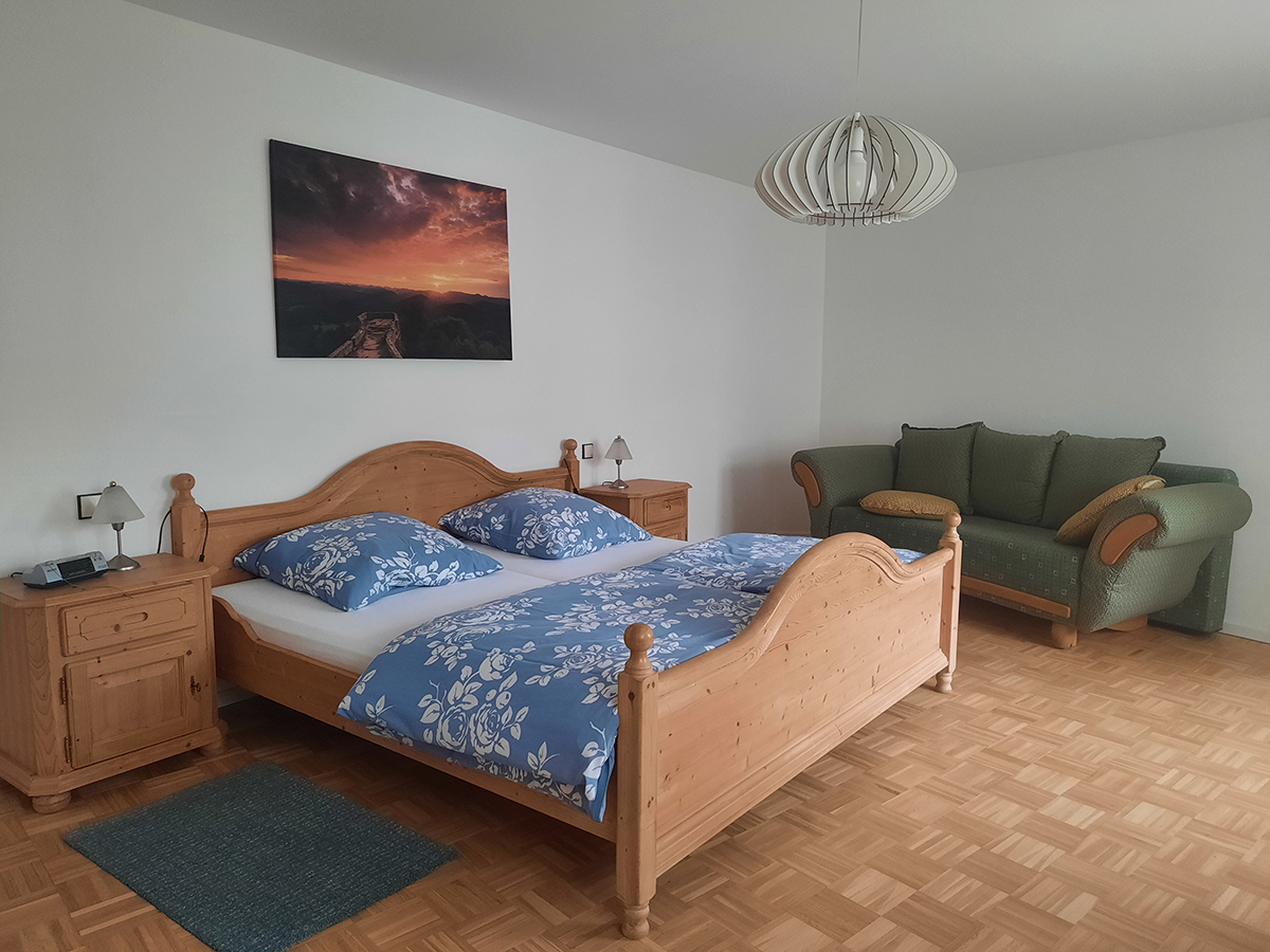 Mit einem Doppellbett (200x200) in dem großen Schlafzimmer und einer ausziehbaren Couch (140 x 190) im Wohnzimmer besteht Schlafgelegenheit für bis zu 4 Personen. Die Wohnung verfügt selbstverständlich über einen W-LAN Zugang und Kabelfernsehen. Für unsere kleinen Gäste halten wir eine vollständige Ausstattung bereit: vom Babybett bis zum Flaschenwärmer über einen Kleinkindersitz. Im Eingangsbereich finden Sie einen Gästekühlschrank zur Selbstbedienung, in dem wir für Sie eine Auswahl unseres Wein- Saft- und Sektangebotes bereit halten.